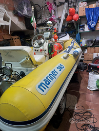Vendo mariner 385 gommone in neoprene omologato C E cat C per 4 persone. Vendo solo gommone con luci di via e 360 con cuscineria gavone anteriore consolle con bussola e gavone. Seduta imbottita con enorme gavone a poppa e schienale abbattibile alcune dotazioni ed impianti. Con modifica alla poppa per motori a gambo lungo.Con garmin ecoscandaglio B/N. CON GARMIN A COLORI 1790