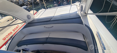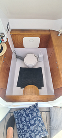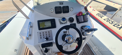 Teak marino, tendalino in acciaio inox, luci di via e di fonda, wc elettrico, volante con timoneria idraulica, cuscineria completa, Chiusura integrale per campeggio nautico con rollbar in acciaio, frigo, fornello, lavabo con rubinetto, carica batteria nuovo 2025 victron bluetooth, batterie nuove 2025, luci subacque Led, faro notturno per rollbar, VHF Garmin e tanto altro!
