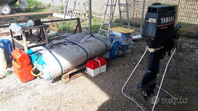 -accessori: batteria con contenitore stagno, ancora efficiente,catena e cima con contenitore, rullo salpa ancora e bitta di prua, divano gonfiabile, cuscino di seduta sul tubolare, tendalino pieghevole,serbatoio carburante 25lt, gavone termico stagno di prua, scaletta di accesso a mare rigida e pieghevole, portacanna da traina,due compressori 12v di gonfiaggio ad alta pressione, gonfiatore a pedale, dotazioni di sicurezza standard