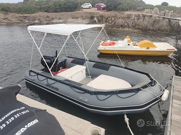 Per passaggio ad imbarcazione più grande, vendo gommone Quicksilver 420 cm in ottime condizioni, motore Mercury 20 cv 4 tempi, pari al nuovo, con non più di 100 ore di moto, chiglia pneumatica per trasporto all'interno dell'auto senza carrello, con ruote alaggio, dotazioni (n.3 giubbetti + anulare) , tendalino, scaletta di risalita, doppia ancora, panca seduta contenitore, cuscino di prua, serbatoio da 25 litri. Omologato fino ad 8 persone ma perfetto per 3 adulti o 2 adulti e 2 bambini. Praticamente poco più del valore del solo motore.