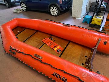 Gommone Radhial lunghezza 3,5 mt, 6 posti vintage ma in ottime condizioni, nessuna perdita, completo di remi, attrezzi originali, borsa.