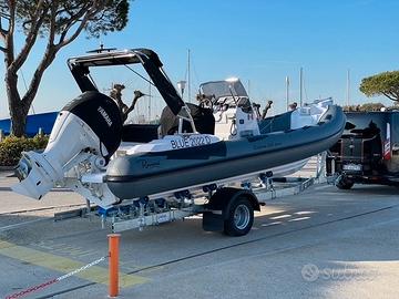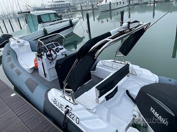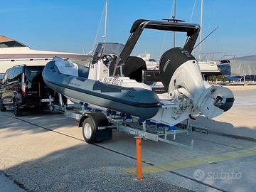 Vendo per passaggio di categoria, gommone RANIERI CAYMAN 23 SPORT con YAMAHA v6 4.2 250 cv WHITE in garanzia ufficiale per tutto il 2026. Il motore ha circa 200 ore, le condizioni generali sono eccellenti, sempre tagliandato da concessionario e rimessato al coperto, non ha trattamento antivegetativo perché usato e lavato ogni volta. Accessori aggiuntivi a quelli di serie: ancora in acciaio con verricello elettrico, navigatore GPSMAP 923XSV GARMIN ecoscandaglio con mappe appena aggiornate, VHF fisso Garmin 115, radio Fusion con 4 altoparlanti, JOYSTICK di manovra YAMAHA con COPILOTA integrato, gonfiatore elettrico fisso, presa per caricare le 2 batterie con alimentazione 220v da banchina, Frigorifero in acciaio originale, rivestimento pavimento in moquette nautica grigia, estensione prendisole di poppa originale con materassini, roll-bar originale con tendalino e in aggiunta coperture a zip laterali. Teli copertura da viaggio in rimorchio per console e seduta, telo copertura totale per rimessaggio. E' immatricolato BLUE2022D. Nel prezzo è compreso il RIMORCHIO basculante PIMA CON ASSE GEMELLATO da 2000 Kg. appena fatta la prima revisione, dotato di impianto totale luci a led. In visione presso NAUTICA SEAWORLD CAMPOSAMPIERO PD VIA NIEVO 7A.