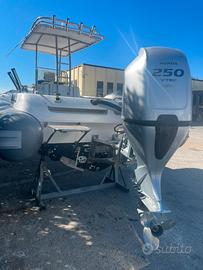 Battello con tubolari nuovi e motore di Honda 250 hp, cambio manuale, di circa 50 ore. Timoneria idraulica. Tubolari 2025. Lunghezza m 7,49 Larghezza m 3,08 Diametro tubolare 0,57
