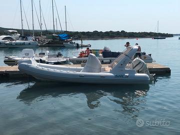 Gommone sempre tenuto al coperto, con telo di copertura invernale, e carrello. eventualmente disponibile visionarlo in Porto Ottiolu in Sardegna. Motore Evinrude 200 cv