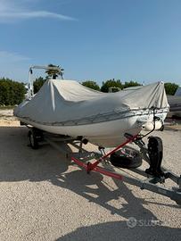 Tendalino molto comodo con prolunga fino a prua che va a coprire totalmente il gommone