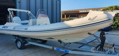 GOMMONE SACS mod.S680, in ottimo Stato anno di costruzione 2007, completo di cuscini , autoclave con doccia e riserva idrica , impianto luci di Via , pompa di sentina, roll-bar in acciaio Inox , tendalino, verricello elettrico salpa ancora , bitte a poppa , consolle di guida con timoneria idraulica, cruscotto porta strumenti, musone di prua in VTR, scaletta, serbatoio carburante sotto consolle, bussola , VHF , GPS, marca Lowrance modello Elite 9 Ti.