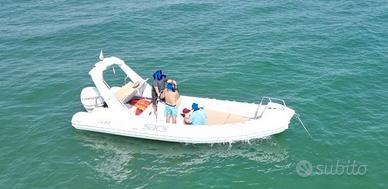 Doppia batteria con staccabatteria, timoneria idraulica, luci led, strumentazione digitale completa retroilluminata, GPS Eco GARMIN 521S, impianto sentina elettrico, aspiratore vano serbatoi, luci di via e fonda, musone prua in VTR con verricello ancora elettrico a doppi comandi, 60 metri catena, scaletta e spiaggetta bagno in legno e inox, anelli di traino, sedile di poppa trasformabile in grande prendisole, serbatoio carburante 195 litri in inox, doccia con serbatoio 100 litri, roll bar in VTR con luci led, telo copertura totale, tendalino e telo copri console, impianto stereo 2023 completo, dotazioni sicurezza