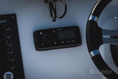 salpa ancora con musone ancora e catena, stereo Fusion 4 altoparlanti bi-zona, serbatoio Carburante polietilene lt.90, copia Certificato CE + Dichiarazione di conformità, timoneria idraulica, Tubolari in colore Orca Fabric Impression, tavolino estraibile a poppa,