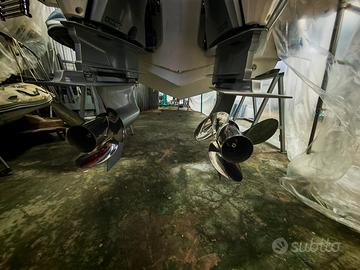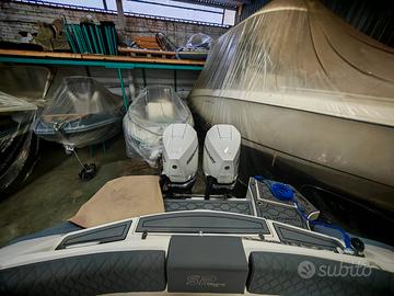 GOMMONE SEA PROP 33 ANNO 2025 CON MOTORI MERCURY V300 XL ORE DI MOTO 47. GPS Garmin, VHF cobra, stereo con casse, seadeck pozzetto, cuscineria completa, tendalino, serbatoio carburante, serbatoio acqua, bagno, letto matrimoniale, lavello, piano di cottura, frigo, verricello, faro, wc elettrico, colore tappezzeria grigio chiaro, tubolari Carbon di colore grigio, commissione a parte.