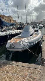 SEA PROP 33 COMFORT Vendesi per passaggio a categoria superiore, ottime condizioni. Il battello ha navigato pochissimo. Ore di moto certificate.Tagliandato MOTORIZZAZIONE: o 2 x Mercury VERADO 300 V8 (Eliche in acciaio) di colore bianco. Velocità Max: 50 nodi / Crociera: 35 nodi ALLESTIMENTO E ACCESSORI (STRAFULL): o ESTERNI: Rivestimento SeaTeak completo, Tavolo elettrico, Rollbar VTR con doppio tendalino, doppia scaletta, Verricello elettrico (Ancora 10kg + 50m catena INOX), ghiacciaia, Mobile con lavabo. o INTERNI: Cabina con letto matrimoniale + letto aggiuntivo, bagno separato con WC, lavabo, doccia e Boiler. Completo di giubotti salvagente. o ELETTRONICA & COMFORT: GPS Garmin 12", Impianto Stereo, Inverter, Telo camping totale, Cavo banchina, Radio portatile. DETTAGLI TECNICI: o Lunghezza scafo: 9,95 m (Natante) o Larghezza: 3,54 m o Serbatoio Benzina: 600L (Acciaio Inox) Il gommone è visibile presso la sede sea prop di Napoli. PREZZO: € 115.000,00. Non trattabili