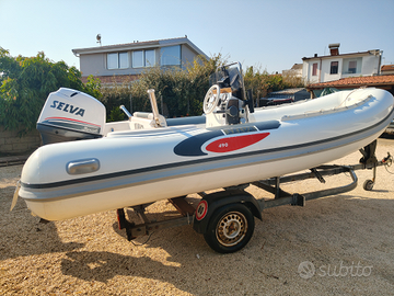 Vendo gommone e motore Selva 4.90 entrambi del 2011, motore a iniezione con circa 1100 ore di moto il tutto tenuto maniacalmente. Il gommone viene venduto completo di cuscineria, dotazione di bordo, serbatoio benzina in acciaio inox da 50 litri, vari portacanna, pompe sentina, ecoscandaglio ecc ... Sempre tenuto al coperto, risciacquato con acqua dolce dopo ogni uscita e il motore tagliandato regolarmente ogni anno. Contatto telefonico 3409912128