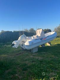 Gommone Selva 570 con motore 4 tempi Suzuki 90 cv del 2016 appena effettuato il tagliando completo più antivegetativa, pronto per la stagione estiva. Dotazioni di bordo,tendalino,cuscineria in ottimo stato,stereo fm,doppia batteria con stacca batteria. N.B. Nella vendita non è compreso il supporto in acciaio per il motore elettrico di prua. Euro 13900