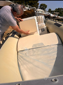 Vendo gommone 4.40 . Cuscineria anteriore con prolungamento prendi sole. Cuscino. Sulla console per la schiena. Sedile guida telaio e sportelli console, tratta la cuscineria, tutto nuovo rifatti 06/2025. Doppia pompa sentina. Doppi serbatoi. Stacca batteria. Stereo con casse nuovo. Luci di via. Completo di motore Yamaha top 700 perfetto fa viaggiare il gomme e in due a più di 30 nodi. Nel prezzo è compreso un carrello da rivedere e revisionare. Il prezzo è leggermente trattabile.Con carrello non revosionato.