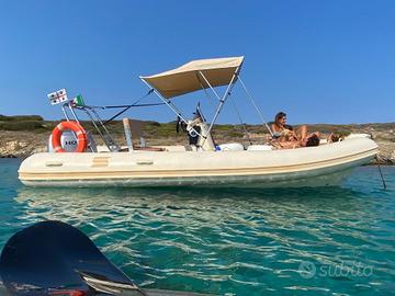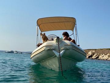 Vendo gommone Solemar motorizzato Honda 150 cv con 310 ore di navigazione, con tendalino in acciaio doccetta. Rimessaggio al coperto.