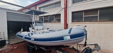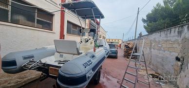 Vendesi per passaggio a categoria superiore : Gommone Stilmar SM50 5,20 Fuori tutto appena rimessato Carrello 750 omologato Accessori compresi con il gommone: T-top alluminio con protezione antivento Luci led per pesca notturna 2 Portacanne basculanti Pompa acqua salata Doccia acqua dolce Ancora con 40 mt di cima Serbatoio inox 40 lt Tubo lavaggio acqua di mare Impianto stereo Bss Marine con 2 casse 2 batterie 60 ah Caricabatterie 2 uscite smartphone Idroguida Tendalino 4 archi Cuscineria completa Tavolino con gambo telescopico Prolunga prendisole 2 Giubbotti N100 Dotazioni di sicurezza 3 miglia NO PERDITEMPO Eco-Gps non compresi
