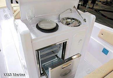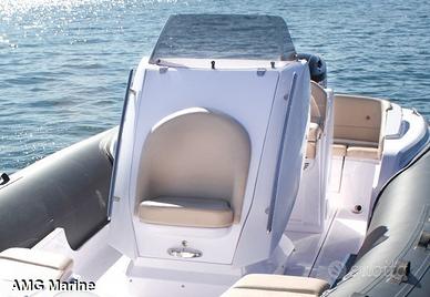 Lo Stingher 22GT è presentato nel 2017 e adotta il famoso scafo del 22 Diablo, ben conosciuto per essere l'evoluzione del vincente Stingher 686XS. Anche la coperta deriva dal 22 Diablo, ma è stata ridisegnata per essere in stile con il resto della serie Stingher GT. Gli spazi sono stati ottimizzati per offrire la stessa accessoristica prevista nei modelli superiori, garantendo comunque libertà di movimento e comfort elevato. La seduta di guida con doppio sedile reclinabile permette una guida in piedi o da seduti, ed è completa di tavolo richiudibile, frigorifero, lavello e cucinino su richiesta. La nuova consolle di guida offre buona protezione dal vento ed ha una porta frontale con seduta integrata che aprendosi permette di accedere alla zona spogliatoio/toilette, dove è possibile installare un piccolo WC. È disponibile in versione fuoribordo singola fino alla potenza massima di 200hp, che spinge il gommone fino a 46kn in condizione di mare favorevole. Come su tutti i gommoni della gamma Stingher lo scafo altamente performante è una vera V profonda. Questa offre una guida eccezionalmente asciutta e fluida, con una maneggevolezza impeccabile e senza forti impatti. Lo Stingher 22GT si distingue per essere un gommone pratico, sportivo e comodo al tempo stesso, apprezzato così da tutta la famiglia. AMG Marine Concessionaria Ufficiale Bavaria Yachts, Italmar, Romar, Mercury, Suzuki, Conarg Marine, Cresci Rimorchi, Spoleto Rimorchi, Garmin. Via Aurelia 2935 Torreinpietra 0054 Fiumicino Roma Tel