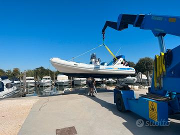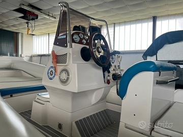 Stingher 606 XS - anno 2004, motore Suzuki 175 CV (2006, 700 ore). Imbarcazione sempre rimessata al coperto in capannone. Utilizzata in acqua esclusivamente per due stagioni estive, successivamente sempre alata in giornata. Manutenzione: * Cuscineria rifatta nel 2022 * Timoneria idraulica sostituita nel 2024 * Ultimo tagliando motore eseguito il 09/06/2025 Dotazioni: * Tendalino su misura con prolunga fino a prua * Carrello incluso (valore 3000?) * Dotazioni di bordo Lunghezza fuori tutto 6,30 m, larghezza 2,65 m, diametro tubolari 58 cm. Omologato per 10 persone. Imbarcazione pronta all'uso. Disponibile per visione su appuntamento.