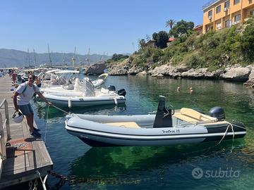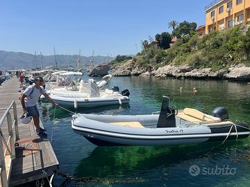 Gommone Sunsea 19 con motore Yamaha 40/60 entrambi in perfetto stato. Numerosi accessori tra cui doccetta, sentina, telo copri consolle, tendalino, ghiacciaia, stacca batteria cuscineria completa e plancette di poppa in teak marino con scaletta a scomparsa. Usato solo per diporto nel periodo estivo.
