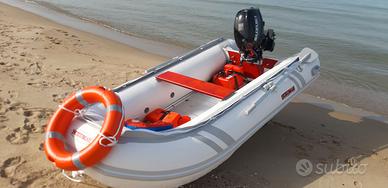 Vendo Gommone smontabile Suzumar DS320AL, con paiolato in alluminio, completo di ruote di alaggio, sacche per il trasporto, gonfiatore, remi, kit riparazione. Regalo 3 giubbini di salvataggio nuovi mai usati e borsa kit entro 3 miglia. Acquistato a maggio 2021, utilizzato solo 20 ore. tenuto perfettamente. nessuna toppa o foratura ,Il gommone stà in una sacca lunga 1 metro. Pronto da gonfiare e usare. Vendo il tutto a euro 700 . prezzo non trattabile Caratteristiche tecniche gommone: - lunghezza cm 318 - larghezza cm 154 - diametro tubolari cm 43 - persone trasp. 4 - peso kg 52 -categoria C volendo è disponibile anche il motore su mio altro annuncio Solo ritiro a mano dopo presa visione – non spedisco