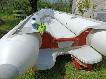 Gommone + motore, tendalino e materasso non sono inclusi. Ha subito riparazioni ma naviga molto bene.