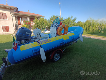 Vendo gommone swell 47 , motore yamaha 40/60 4 tempi con alettone stabilizzatore, nessuna perdita, trim elettrico, stacca batterie,serbatoio acciaio inox 100litri e quello di riserva da 20 Porta canne,tendalino integrale, telo copri gommone, completo di clacson, luci di via, luce 360°, ancora, ampi govoni, ciambella,scaletta di risalita, porta motore ausiliario, pulsantiera nuova, cuscineria da rivedere Carrello satellite 950kg revisionato con impianto elettrico nuovo Il tutto completo di documenti Con carrello euro 6.500,00 non trattabili Solo zone limitrofe