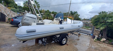 Vendesi gommone swell metri 560 con fuoribordo honda 90 cavalli quattro tempi a carburatori, uniproprietario tutto anno 1996, i tubolari sono stati sostituiti inverno 2017 cantiere master, completo cuscineria ,doccia , dotazioni di bordo, commutatore batterie, pompa sentina, roll bar con luci e proiettore, certificato d'uso, non autosvuotante, euro 8.000