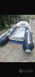 Gommone modello T 40 con paiolato di alluminio lunghezza 4 metri portata 7 persone con tavola per la seduta ancora da 3 kg catena e 20 metri di corda marina gonfiatore manuale usato solo 3-4 volte estate 2025 senza motore , già venduto, ma a chi lo acquista regalo un motore da 4 cv con libretto ma un po datato con remi e mezzo marinaio