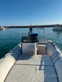 Gommone Tecno 510 dotato di: scaletta bagno, tendalino, cuscineria completa, impianto doccetta, copri consolle, telo copri gommone, doppia tanica carburante. Motorizzato Yamaha 40/70 anno 2014 con 171 ore di moto. Trim revisionato un mese fa e relativa calotta resinata e rifatta. Sempre rimessato e tenuto con cura, tagliandi ufficiali. Carrello RimorCar: peso max 650kg, da revisionare. Visibile previo appuntamento. No perditempo. Prezzo trattabile.