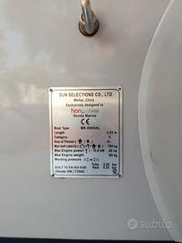 Il motore è stato immatricolato nel 2015, ha una potenza di 9.9 CV ed è quattro tempi, sinonimo di alta affidabilità e bassi costi di gestione. Anch'esso é stato tagliandato regolarmente e gli sono state sostituite quando necessario tutte le parti soggette ad usura da consumo. Lavato in acqua dolce e rimessato in luogo chiuso durante l'inverno, si presenta in ottime condizioni.