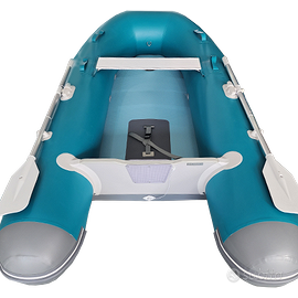 MODELLO_ 350 air DIMENSINI ESTERNE_ 350 x 160cm DIMENSIONI INTERNE_ 239X75 cm PASSEGGERI_ 5 MASSA_ 36 kg POTENZA MAX_ 20 Hp DIAMETRO TUBOLARI_ 42cm NUMERO CONPARTI_ 3+1+1 MATERIALE_ PVC 1100 DTEX CARENA_ air COLORE_ turchese Dotazioni di serie del tender Kit riparazione Coppia di remi Gonfiatore Panchetta in legno Sacca di trasporto