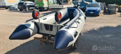 In aggiunta presente carrello da cantiere (non omologato) tutto perfettamente funzionante e rimorchiabile, telo copri gommone in PVC resistente alle intemperie e luce solare di colore blu resistente e nuovo.