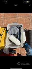 Scaletta tendalino, tutti gli accessori di sicurezza pompa Manuale pompa elettrica 12 volts, quattro salvagenti due serbatoi benzina ,custodia sistema di gonfiaggio tutti i sacchi per custodirlo, le sacche originali due boe anti contatto e altro ancora chiamate per info o contattatemi direttamente al 349 56 91 176