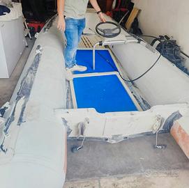 vendo per passaggio a gommone di categoria superiore gommone led 5 CON PAIOLATO E PARAMEZZAlE CHIGLIA IN LEGNO COMPLETAMENTE SMONTABILI i tubolari hanno qualche micro perdita riparata (Tiene bene il gonfiaggio per circa 3 giorni) 420 cm di lunghezza omologato per 7 persone MOTORE Yamaha 20 cavalli anno 1987 2 tempi è perfettamente funzionante e parte al primo tiro COMPLETO DI DOCUMENTAZIONE ORIGINALE tagliandato tutte le stagioni, quest'anno è stata tagliandato 05-2025 con sostituzione girante,olio piede, sostituzione candele e lubrificazione generale di tutti i meccanismi. è stato sostituito anche tubo e pompetta del serbatoio. Utilizzato per 20 giorni l'anno in estate e poi rimesso sempre al chiuso (motore fatto girare per 5/10 Min una volta al mese) il gommone è completo di pilotina e leva e panca che si può utilizzare come stivaggio c'è anche un tappeto antiscivolo su ogni pezzo del paiolato IN LEGNO COME IL PARAMEZZALE DELLA CHIGLIA ACCESSORI 1 serbatoio Yamaha da 22 litri 4 giubbotto di salvataggio 1 salvagente anulare 1 coppia di remi 1 portacanne da pesca (fissato sulla panca di guida) telo in PVC a prua per creare ulteriore spazio di stivaggio Se interessati, WhatsApp 3770836788 oppure contatto su subito.it mando anche video del motore in funzione. Prezzo leggermente trattabile