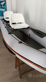 COMPLETO DI BORSA, REMI, POMPA, SEDILI RIBALTABILI, PANCHE IN LEGNO, PORTACANNE E PAVIMENTAZIONE AIRDECK GONFIABILE 10 CM