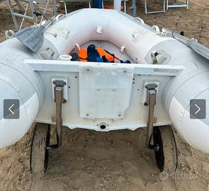 Tender gommone del cantiere inglese Ribeye lunghezza 260 cm omologato per 4 persone + motore Honda 2 cv 4 tempi in buono stato, con regolare libretto, consumi irrisori. Compreso giubbetto salvataggio, ruote di alaggio, 2 porta canna da pesca, remi, il tender ha chiglia in vetroresina, tubolari buoni non ha perdite, molto leggero si può caricare su portapacchi auto. Per info messaggi