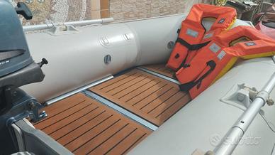 tender mt2,70 chiglia pneumatica tenuto sempre gonfio ,nò riparazioni, tavole in Sinto TEk, remi, pompa, due salvagenti copertura totale del battello , borsa trasporto e ruote di alaggio retrattili, completo di motore yamaha 4t .e 4 cavalli tutto rimessato ottime condizioni vendesi solo interessati