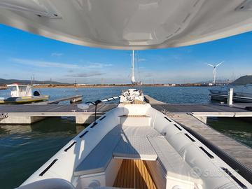 Gommone perfetto per battute di pesca giornaliere ma versatile per la suo layout componibile per l'uso diportistico. Con doppio prendisole poppa e prua.