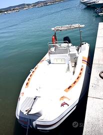 Vendo gommone 5,60 trident con tubolari rifatti 2 anni fa materiale orca, cuscini nuovi, eco scandaglio garmin, stereo, bussola , contagiri manometro benzina, serbatoio d'acqua 100 lt doccia , serbatoio 54 lt benzina , pompa di sentina, plancette laterali, più plancette poppa e prua, scaletta risalita, motore mercury pro 40/70 elica acciaio gambo del 110 con circa 250 ore di moto del 2014 in otttime condizioni,roll bar , doppio tendalino,carrello satellite appena revisionato giugno 24,con vericello elettrico, e manuale di riserva. Ampi Gavoni completo di giubbetti 100 niuton, razzi entro le 12 miglia, massima serietà . Qualsiasi prova. Si può leggermente trattare.