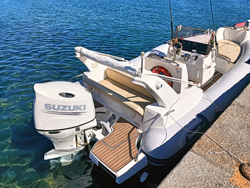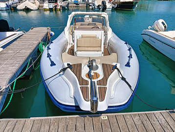 Questo gommone di categoria B ha doti di navigazione eccellenti anche con mari formati, ed il sistema water ballast in carena garantisce un'ottima stabilità all'ancora, riducendo al minimo rollio e beccheggio.