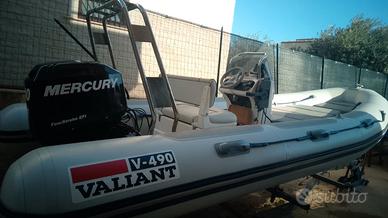 vendo, gommone valiant con motore mercury efi iniezione 40/60 del 2008 con poche ore di navigazione (circa 400) con carrello omologato,tubolari in pvc di alta qualità IMMACOLATI e senza microperdite, carena IMMACOLATA mai antivegetativa e senza un graffio, roll bar,tendalino,radio e casse boss marine, stacca batteria, pompa di sentina,cuscineria nuova, scaletta, ecoscandaglio, filtro decantatore, strumentazione ecc. il gommone è come NUOVO.... il motore è stato TUTTO rimessato a febbraio spesi 550 euro. il carrello è da revisionare no assoluto a indecisi e affaristi. accetto piccola permuta con auto di mio gradimento.