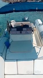 gommone joker boato 24 tubolari in buone condizioni senza perdite due serbatoi benzina plancette di poppa doccia volante montato centralmente passaggio comodo per andare alla scaletta tendalino a tre stecche molto ampio cuscineria completa.motore Yamaha 225 cv sempre fatta la manutenzione stagionale tutto funzionale e in buone condizioni usato un mese l anno in ferie poi portata al cantiere nautico a Roma .cambio per passaggio a categoria superiore.
