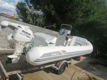 Gommone zar mini 18sc 5,50 del 2022 con motore Suzuki df 40 bianco iniezione del 2013 con 400 ore perfettamente funzionante,cuscineria, pompa di sentina automatica e manuale serbatoio 25lt,tendalino, possibilità di acquistare anche il carrello a parte