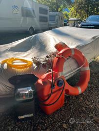 Vendo gommone Zodiac lunghezza 3,5 mt in ottimo stato ideale per il camper perché ha la chiglia gonfiabile con diversi accessori gonfiatore a batteria ,remi , mezzo marinaio , ruote di alaggio , salvagente ,panchina e molto altro ancora Motore Selva 6cv il tutto usato solo al lago MAI visto il mare ottimo per 3 persone Ritiro a mano zona MONZA