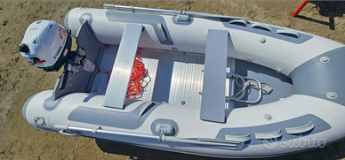 Gommone tender cadet 310 alu come nuovo colore bianco e grigio con paiolato in alluminio anno 6/2018 completo di motore yamaha 6 cv quattro tempi anno 06/2010 con guscio protettivo calandra , ruote di alaggio in acciaio nuovissime , ancora, due panche ,scaletta, anulare e due salvaggenti nuovi , telo originale copri gommone ,gonfietto completo . Poco trattabile