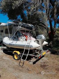 Tender pronto all'uso. Completo di: motore, carrello, tendalino, cuscineria, doccia a bordo e porta canne da pesca. Motore Honda 20 cv con pochissime ore. Carrello pronto per la revisione.