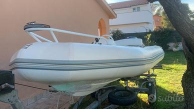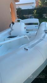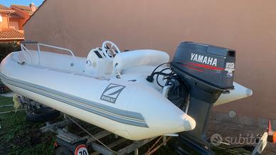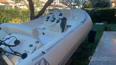 Gommone Zodiak serie Yacht line 420 , pilotina , serbatoio interno, impianto elettrico nuovo con cavi "siliconici", luci di via,staccabatteria per 2 batterie, kit per 3 miglia, batteria bosch 1 anno di vita , tendalino nuovo mai usato 3 archi,, il gommone non ha avuto forature , eseguito controllo estate 2024 presso centro zodiak roma , cambiati diverse cose filtro decantatore con basetta, impianto elettrico, volante, manometro benzina con galleggiante , cuscineria come nuova , rimossa nelle foto poiché riposta per il periodo invernale,motore tagliandato, motore yamaha 40cv 2 tempi utilizzato veramente poco, carrello revisionato con vericello elettrico e sostituite tutte le parti come cerchi gomme colonnine freni "canasce, tamburi, cavi,impianto elettrico e prepulsore originali" targa per il trasporto per qualsiasi traino auto"XA..", ruotino anteriore ecc....spesi 800 ? solo carrello. Il gommone non presenta perdite. Sostituite anche altre cose.