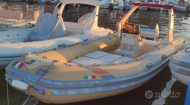 Vendesi Gommone Solemar 5.80 ben manutenuto, corredato di motore Fuoribordo Modello YAMAHA 4 T 40 cv YF40DETL del 2007, sempre tagliandato ed accensione al primo giro di chiave! Il gommone è completo di n° 2 batterie da 80 Ampere; stereo dedicato con 4 casse; n° 3 prese USB per caricare smartphone e varie strumenti elettronici; bussola; ecoscandaglio; luci di via e luci led di cortesia; n° 2 luci led subacquee; tendalino allungabile dal rollbar sino a prua color bordeaux; doccetta con serbatoio acqua dolce da 70 Lt; Pompa di sentina + pompa di sentina automatica; cuscineria nuova a cellule chiuse con ampio prendisole di prua e di poppa con possibilità di usufruire di un tavolo da pranzo con piede annesso da utilizzare all'occorrenza; serbatoio benzina in acciao inox da 70 Lt. Il gommone è davvero una vera e propria goduria con consumi di carburante davvero irrisori (C'è spazio per tutti e per tutto). Dotato di ampi gavoni ove stivare tutto l'occorrente e molto altro ancora! (La Solemar si distingue infatti, oltre che per l'estetica gradevole e per la grande sezione dei tubolari (Perfettamente integri e senza nessuna perdita né microperdita), per la grande vivibilità degli spazi presenti e per i tanti spazi liberi da sfruttare. Rollbar imponente e molto gradevole alla vista con integrate luci di via e luce 360°. Plancette di poppa in vetroresina molto ampie e comode con integrata scaletta telescopica di risalita e ampio maniglione di ancoraggio in acciao inox. Cosa volere di più da un gommone di 6 metri con una navigazione e tenuta di mare perfetta?Gommone Pronto alla boa con motore già rimessato e con antivegetativa passata.! Per i curiosi, la vendita avviene per passaggio a categoria superiore. Astenersi perditempo e collezionisti di foto. Contattarmi gentilmente solo se davvero interessati grazie!