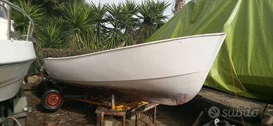 Gozzetto in vetroresina di 5,50mt completamente riverniciato a gel coat con motore buck 2 cilindri 24 cavalli diesel . Ci sarebbe da finire di montarla e costruire paioli e cofano motore . Il bottazzo e nuovo e ancora in scatola . Vendibile anche separatamente prezzo trattabile
