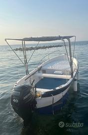 Vendo gozzo 5,30 m con motore Mercury 40 CV 4T (anno 2017) - completo e pronto alla navigazione.Occasione da non perdere: gozzo in vetroresina da 5,30 metri, stabile e confortevole, ideale per uscite giornaliere, relax in mare o pesca.Imbarcazione guidabile senza patente nautica, completa di dotazioni di sicurezza e accessori, pronta per essere messa in acqua.