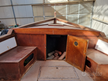 Affascinante gozzo, solido e dal sapore classico, realizzato in vetroresina con pagliolo e rifiniture in legno.